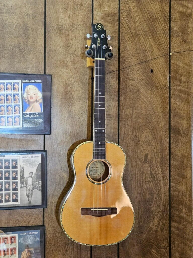 Bob is the little bass uke that lives on the couch. He’s always within reach, always ready for a few quick lines to Andy’s fingers moving. For something this small, he puts out a warm, round thump that feels bigger than it should. He’s easy to play, easy to live with, and somehow ended up as half of the Bob & Doug duo without anyone questioning it.