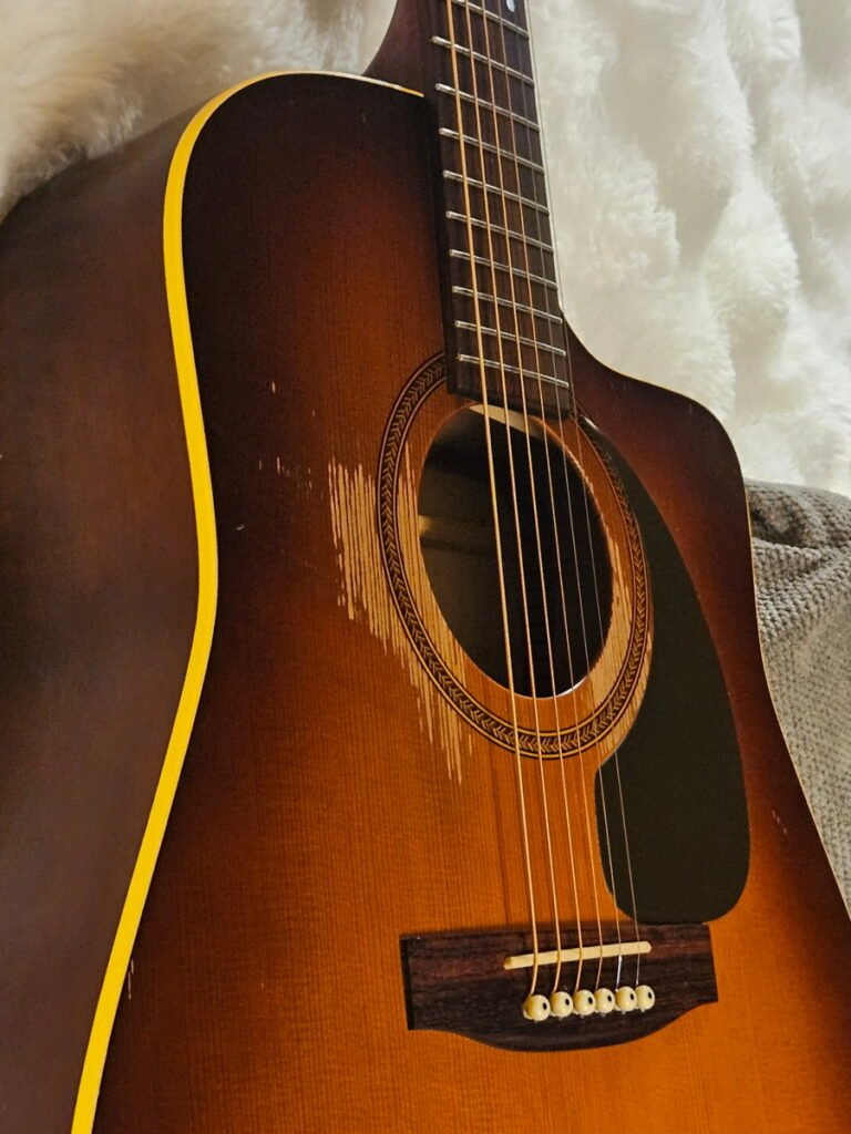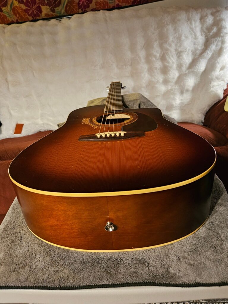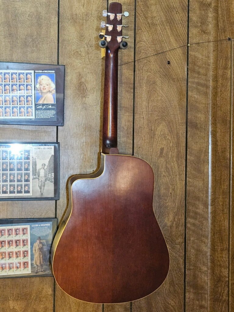 This guitar isn’t just loud—it’s alive. Cedar tops open up over time, and after three decades of porch playing, Doug has become one of those rare acoustics that rings like a bell and sustains like it’s plugged in. The skinny neck and low action make it effortless to play, and the cedar/cherry combo gives it a voice that several people have compared to a piano.