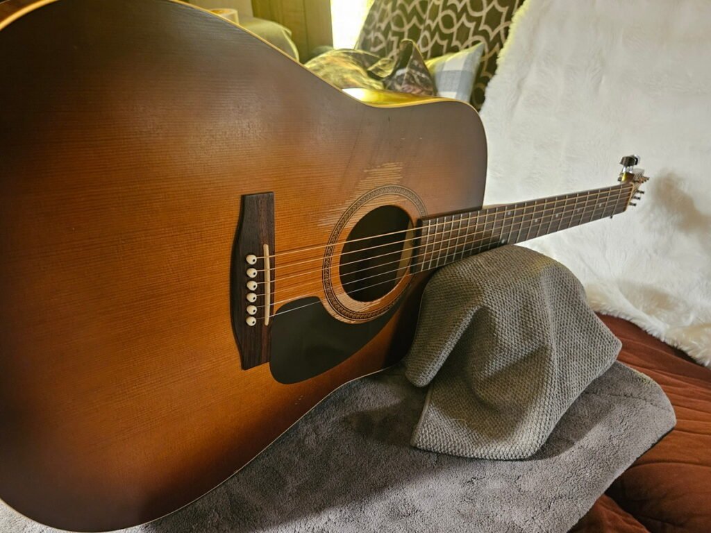 It’s also a guitar with miles on it. The worn finish around the soundhole isn’t damage—it’s proof. Proof that it’s been played, loved, and used exactly the way a Seagull should be.
